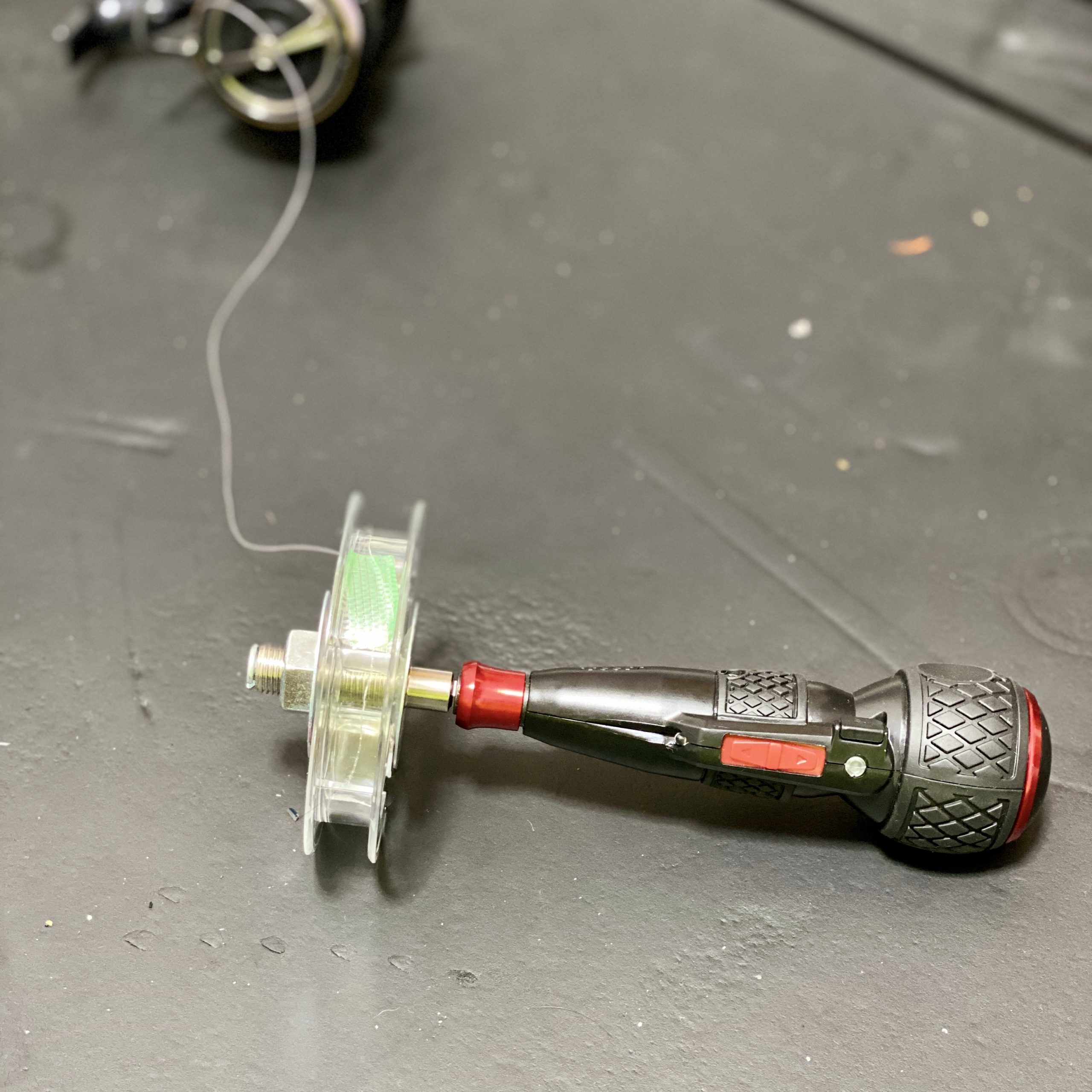 今日はメンテな朝活。19セルテート4000番のラインチェンジしました。糸巻きには電動ドライバーがお勧めです。メッチャ簡単で楽チンですね。#朝活 #19セルテート #ラインチェンジ #電動ドライバー #釣り好きな人と繋がりたい