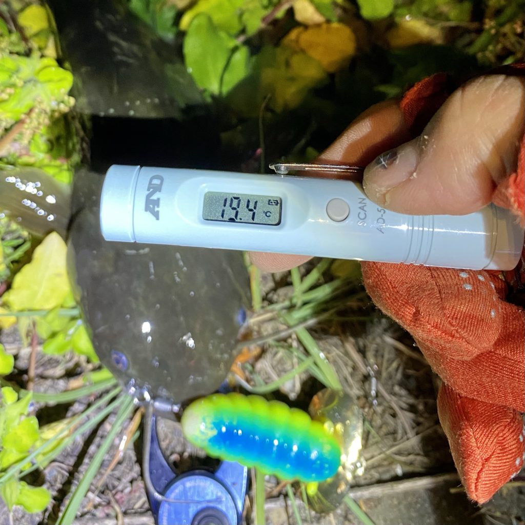 20℃あった水温は一気に5℃下がってしまって15℃、低いところは10℃になってしまい、ナマズの活性も一気に下がりました。