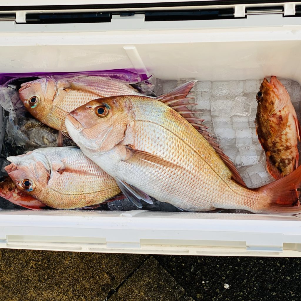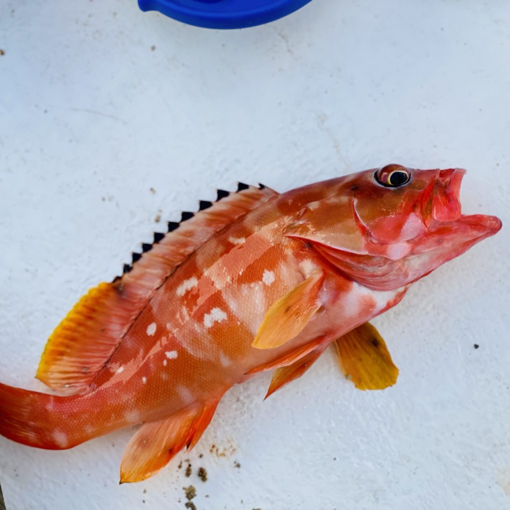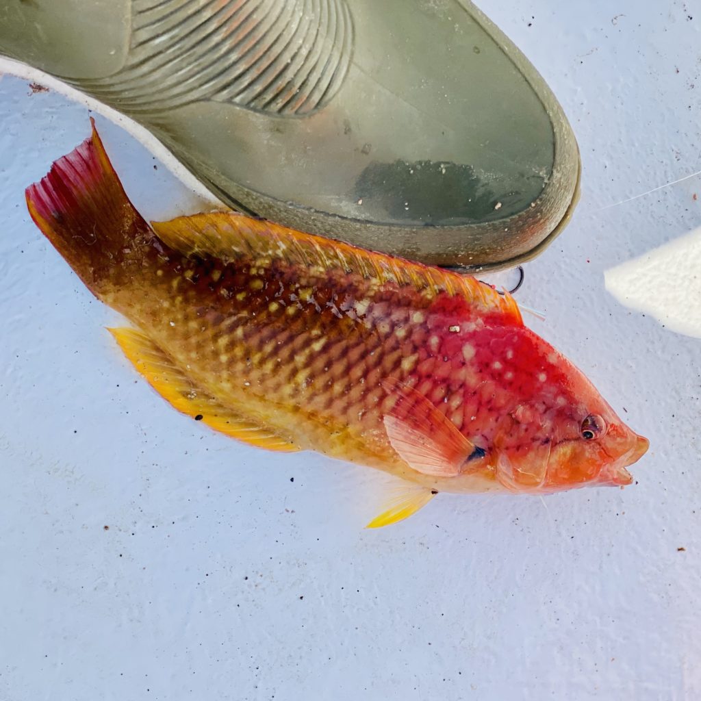 長曽根も釣り人がいっぱい来てましたが、釣友がアカハタ1匹。