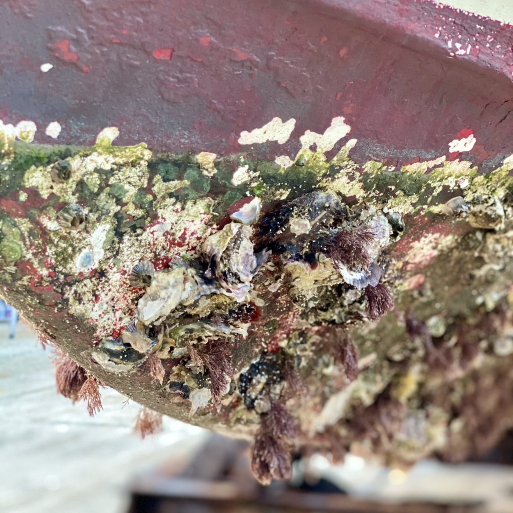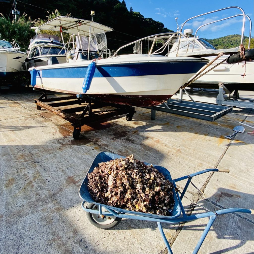 何年も係留したままだったので、牡蠣殻がネコに大盛り収獲できました。